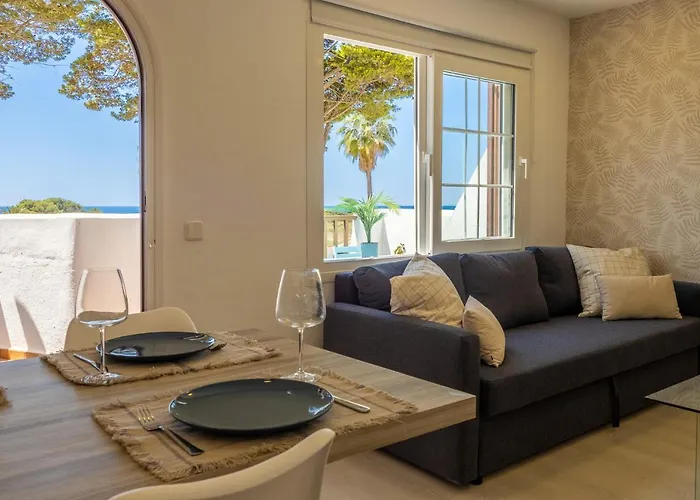 Preciosos Apartamentos Reformados En Son Bou villa biedt uitzicht op de tuin en beschikt over een terras. De accommodatie heeft een badkamer, voorzien van een apart toilet en een douche. Er zijn ook een haardroger en handdoeken voor uw comfort.